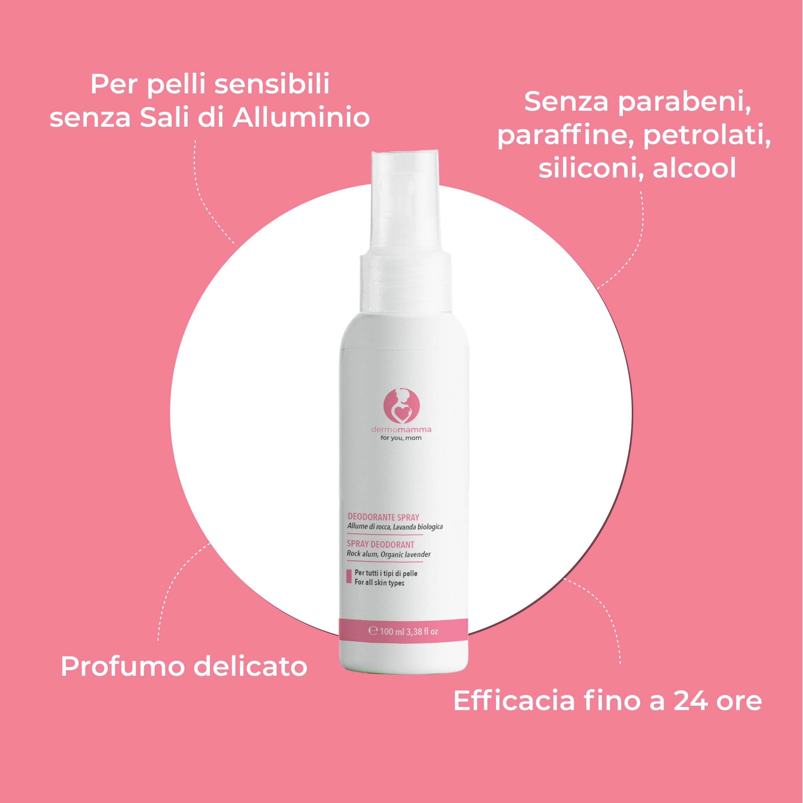 Il Deodorante Spray Dermomamma è stato creato pensando proprio alle esigenze delle future e neo mamme. È un deodorante in gravidanza con una formulazione vegan e green, studiato per regolare la traspirazione senza bloccare i naturali processi fisiologici del corpo.